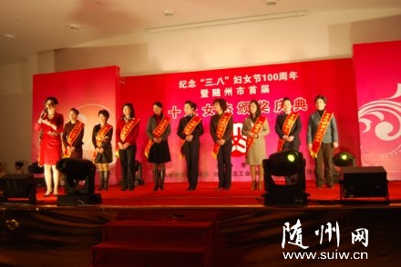 隨州首屆十大女杰頒獎(jiǎng)現(xiàn)場(chǎng) 為更好地團(tuán)結(jié)帶領(lǐng)全市廣大婦女群眾緊緊圍繞市委市政府提出的建設(shè) “圣地車都”、“神韻隨州”目標(biāo)而努力奮斗,集中展示隨州女性自尊、自信、自立、自強(qiáng)的時(shí)代風(fēng)貌,2013年6月,由市委組織部、市委宣傳部、市人社局、市婦聯(lián)、隨州日?qǐng)?bào)社聯(lián)合開(kāi)展的第二屆“隨州十大女杰”評(píng)選表彰活動(dòng)啟動(dòng)。本屆活動(dòng)將分別評(píng)選表彰建功女杰、創(chuàng)業(yè)女杰、自強(qiáng)女杰、道德女杰。在隨州居住或工作的女性,均可參選。2010年,隨州日?qǐng)?bào)社承辦了隨州市首屆“十大女杰”評(píng)選活動(dòng),并于當(dāng)年3月8日,舉辦了隆重的紀(jì)念“三八”國(guó)際勞動(dòng)?jì)D女節(jié)100周年暨隨州市首屆“十大女杰”頒獎(jiǎng)慶典。 |