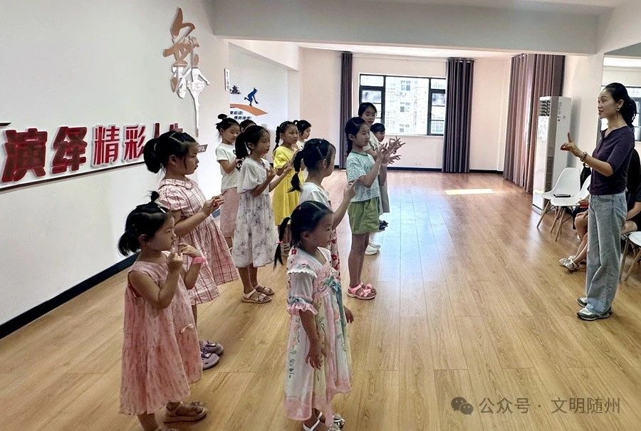 廣水市楚劇團(tuán)老師正給孩子們講解京劇舞蹈的基本動作,并手把手教孩子們練習(xí)京劇的指法,孩子們手指靈活舞動,學(xué)得有模有樣。