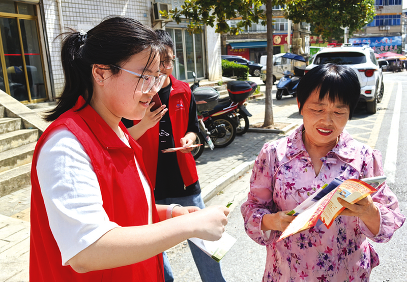 三里崗鎮(zhèn)新時代文明實踐所開展“三大精神”主題宣講活動,圖為工作人員在鎮(zhèn)中心發(fā)放宣傳單并現(xiàn)場講解。