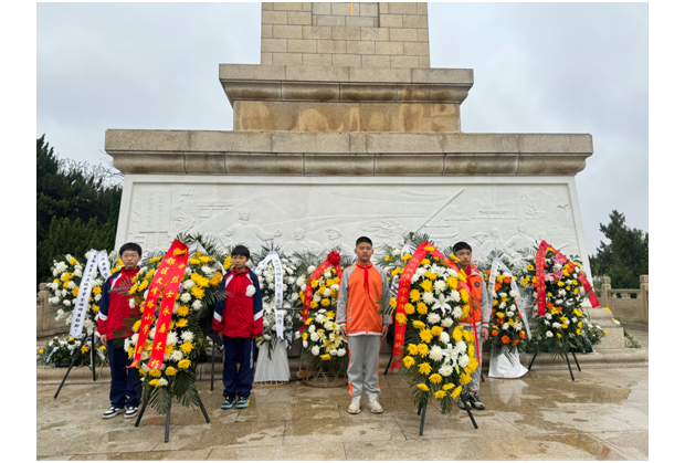 活動現(xiàn)場,全體師生肅立奏唱國歌,少先隊(duì)員代表深情講述革命英烈事跡,讓大家深切感悟紅色精神。三校少先隊(duì)員代表向烈士紀(jì)念碑敬獻(xiàn)花籃,三校校長共同整理緞帶,全體師生默哀一分鐘,寄寓對先烈的深切悼念。