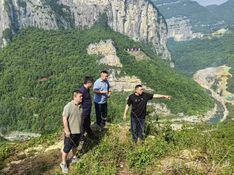 屯堡鄉(xiāng)干部到姚家平水利樞紐工程現(xiàn)場察看水管走向。