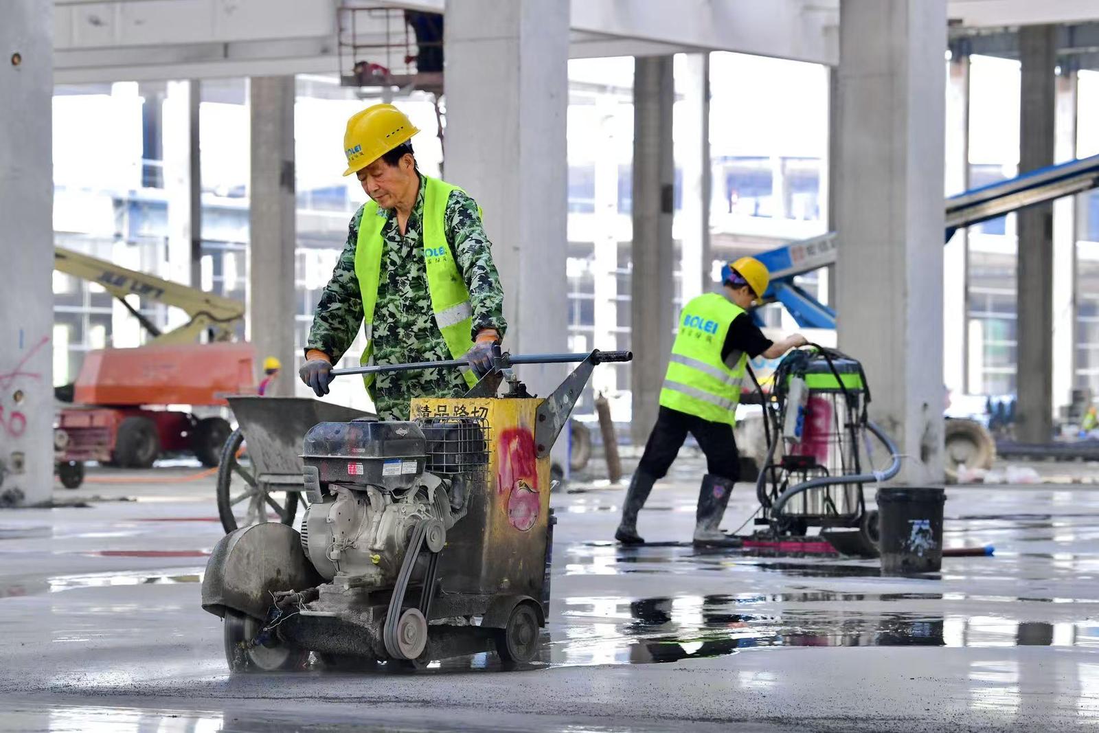 走進(jìn)17萬平方米的2號(hào)電芯車間,地面施工已全面啟動(dòng)。混凝土泵車長(zhǎng)臂舒展,正將混凝土均勻攤鋪在地面上。2標(biāo)段項(xiàng)目經(jīng)理邵劍告訴記者,這里,每天鋪設(shè)混凝土2000余立方米。