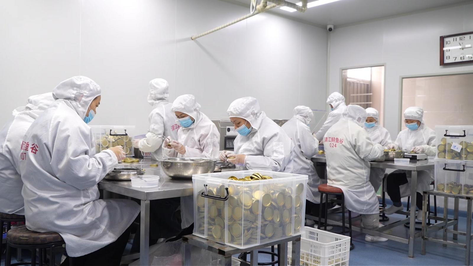 科技賦能,不僅讓養殖更綠色,更讓產品品質與國際接軌。在清江鱘魚谷無菌低溫車間,鱘魚魚子醬從取卵到裝罐的十多道工序,嚴格控制在15分鐘“黃金時間”內完成,最大限度鎖住天然鮮味。