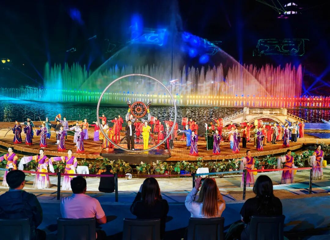 4月24日19時30分,荊門園博園水秀表演準時上演,燈光、音樂、園林景觀交織在一起,打造出一場視覺與聽覺的盛宴。學子們散步園內,晚風拂面,愜意欣賞著美景。