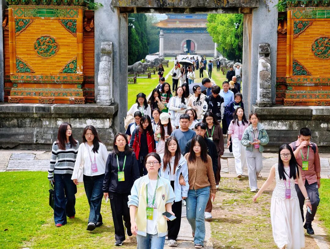 世界文化遺產明顯陵前,紅墻黃瓦映著蒼松翠柏,學子們駐足凝視斑駁的石刻,指尖撫過歷經歲月滄桑的紋飾,聆聽著明代嘉靖皇帝與這座城市的淵源,感受著古代建筑藝術的恢弘與精巧。