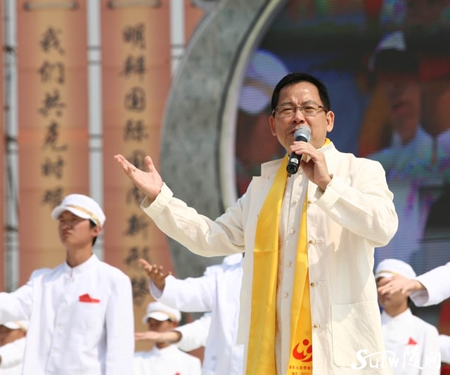 趙忠祥和湖北衛(wèi)視、鳳凰衛(wèi)視、臺灣東森電視臺主持人一起主持慶典盛況